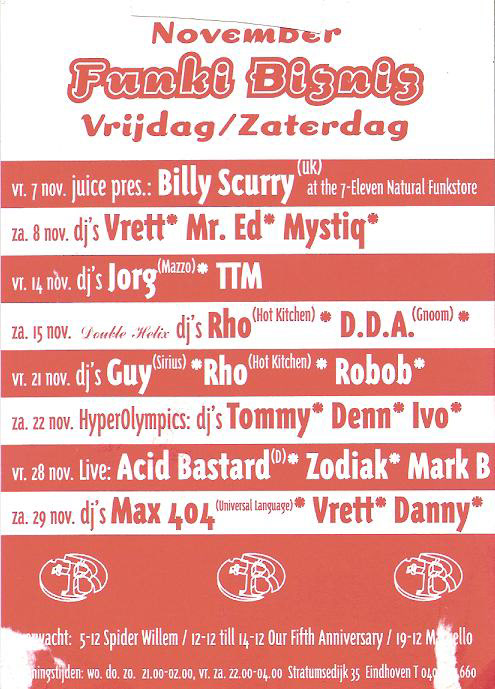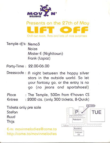 Flyers DJ gigs as Dice, Mystiq, Rob, Nemo³ and DeJa Vu