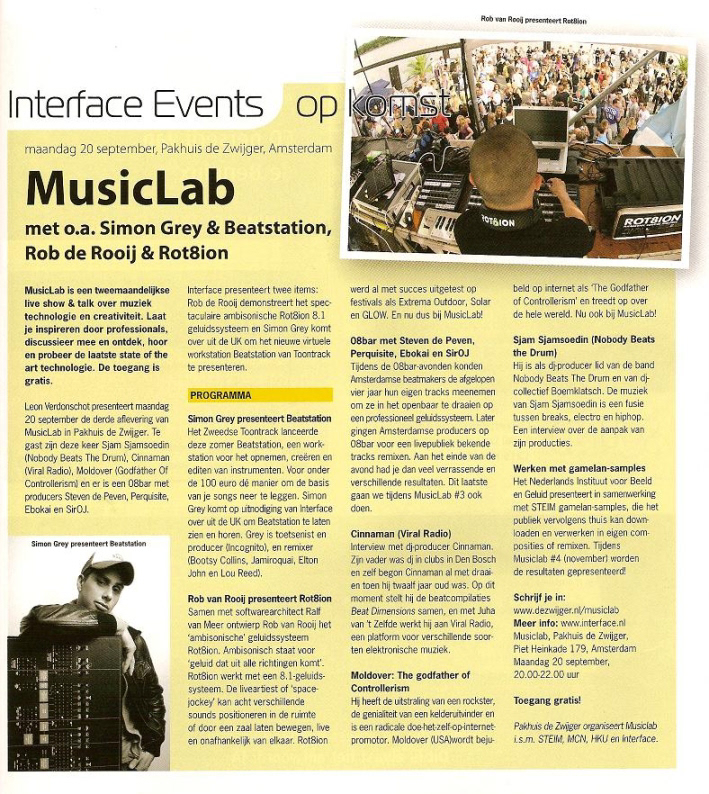On page 61 in the September 2010 edition of Intercafe magazine is an article published about Rot8ion at the Musiclab Night.