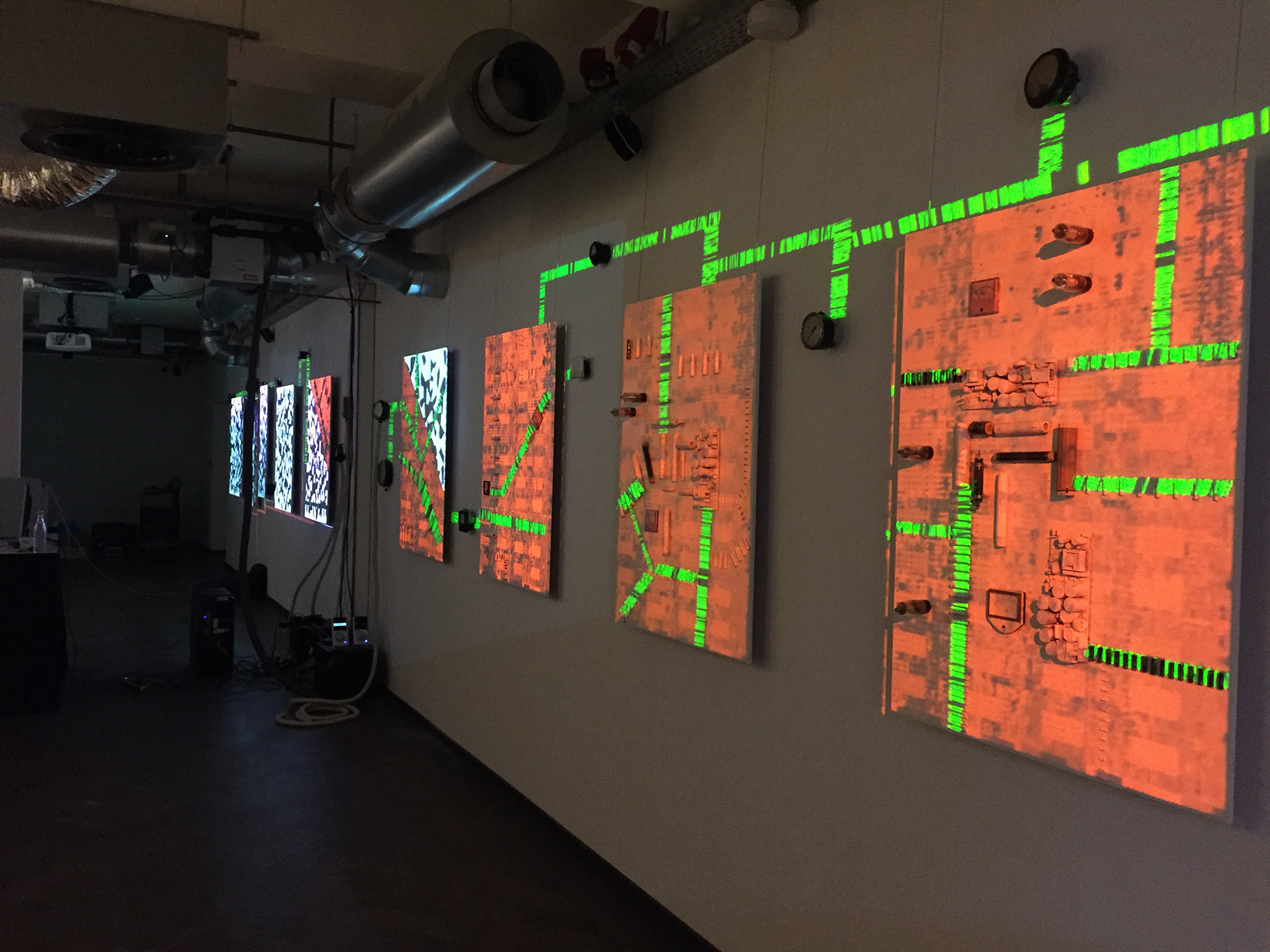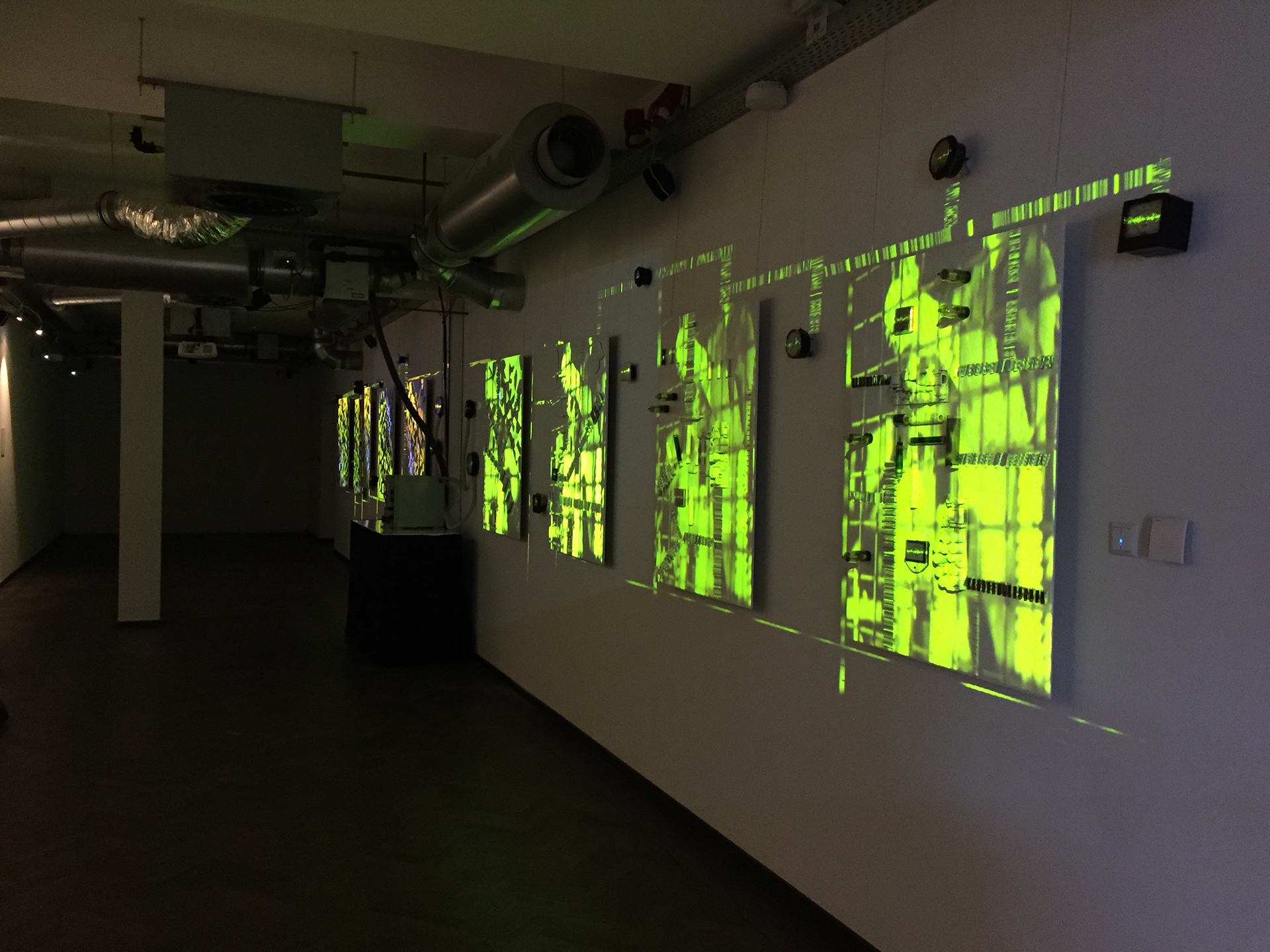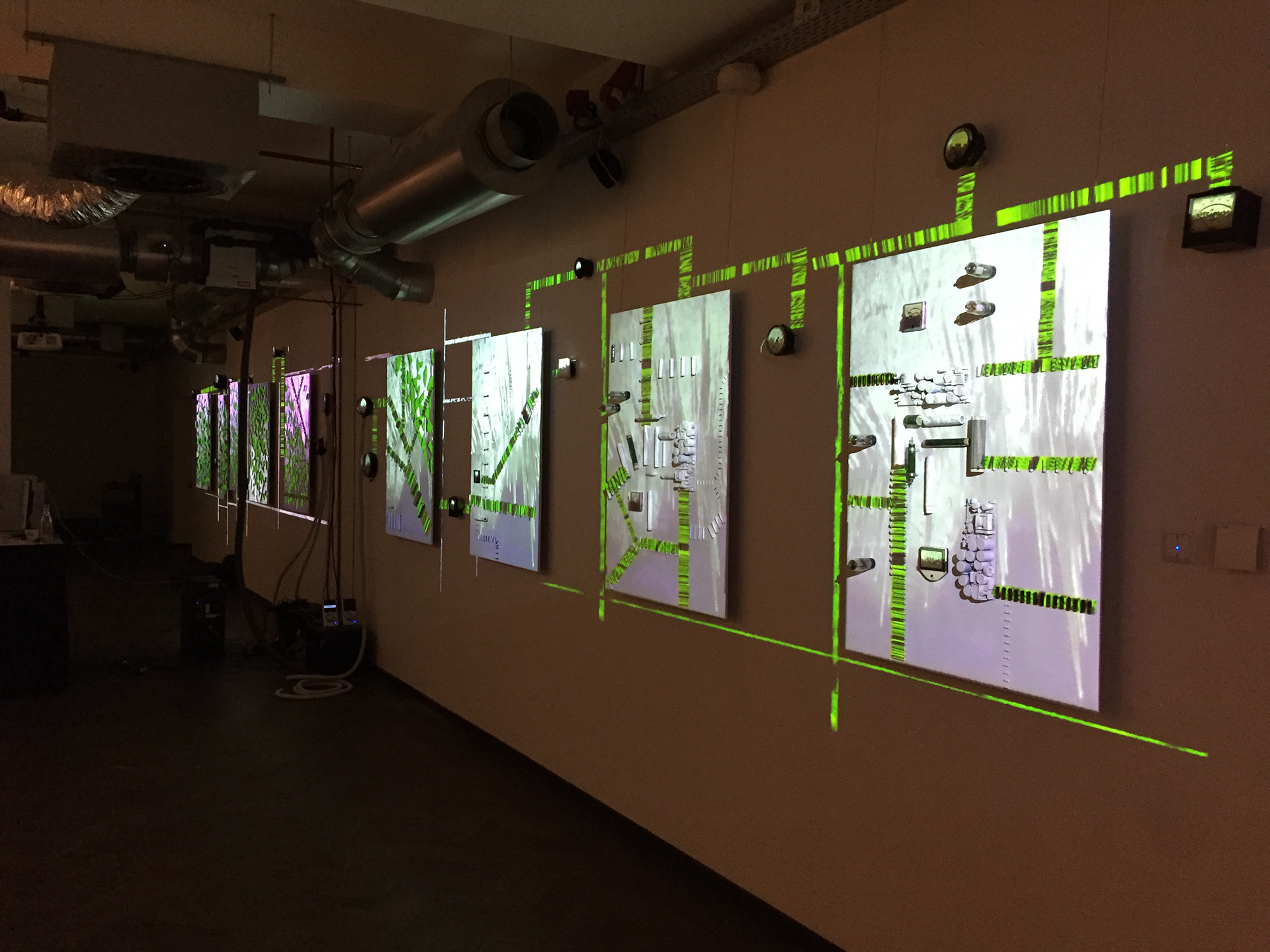 -8 panels, consisting of laser-cut leaf vein patterns and materials such as nostalgic electronic resistors.