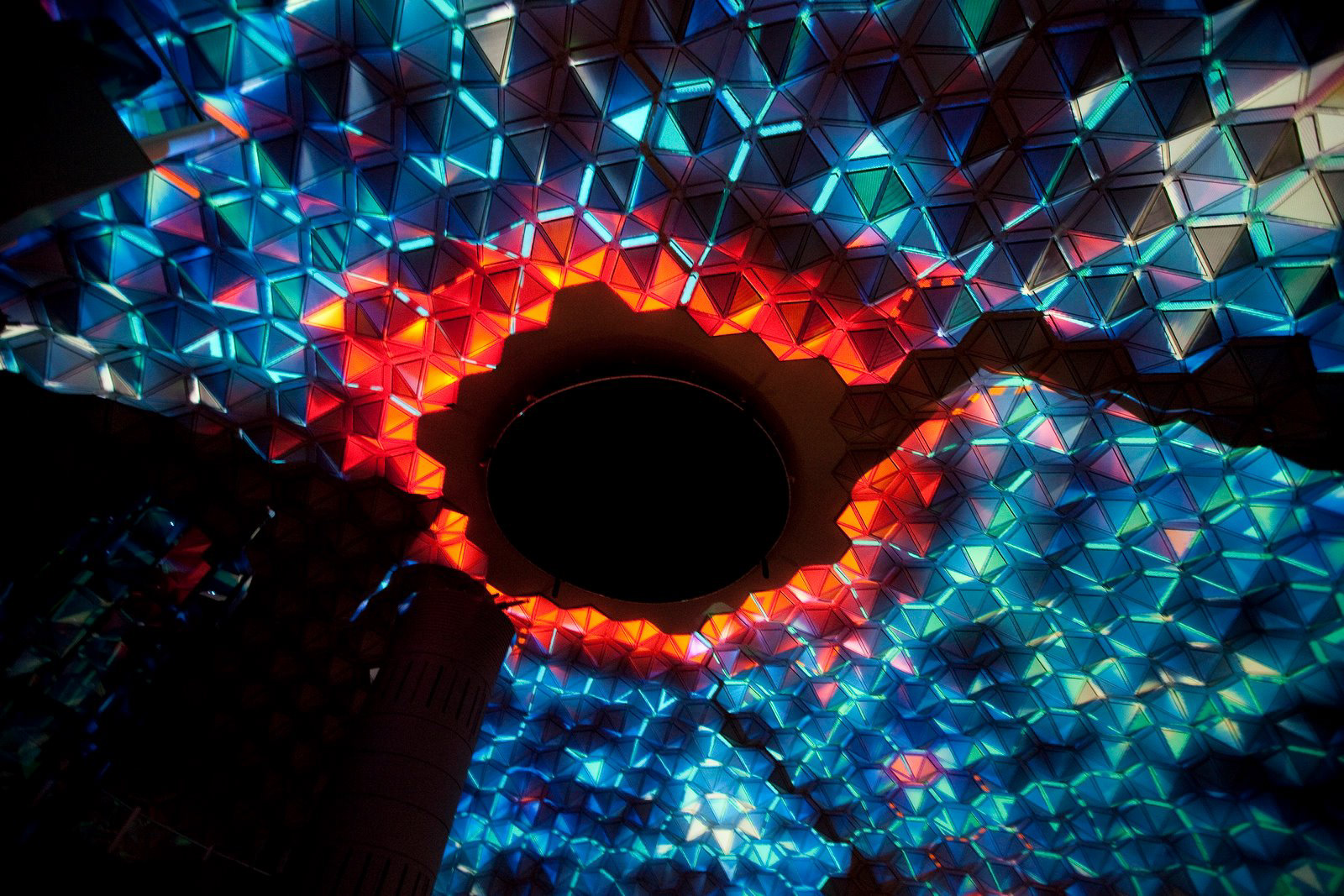 Collider audio visual performance with live 8.1 surround sound & panoramic projections on a 5000 M2 Ceiling with 4 x 15000 Ansilumen projectors. Biggest indoor projection mapping project in Europe ever!